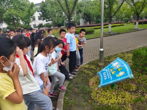 利用课余时间,辅导员带领队员们参观学校布置的交通角、交通宣传展板等,让队员们体会到遵守交通的重要性。看,他们看的多认真!